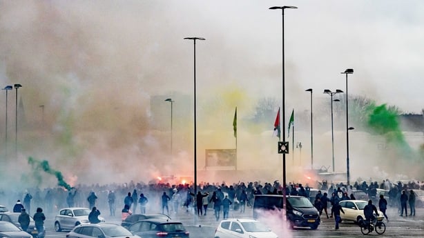 In Rotterdam, police used a water cannon to disperse a group of around 1,000 people who had gathered outside the city's main football stadium, ahead of a clash between local team Feyenoord and bitter Amsterdam rivals Ajax.