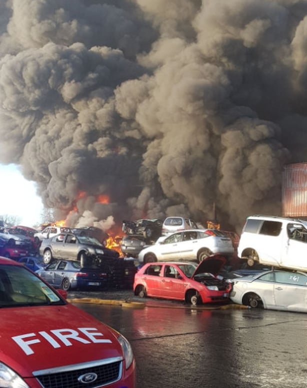 Dublin Fire Brigade has said a fire at a vehicle recycling centre beside Dublin Airport is under control but residents have been advised to close their windows this evening.