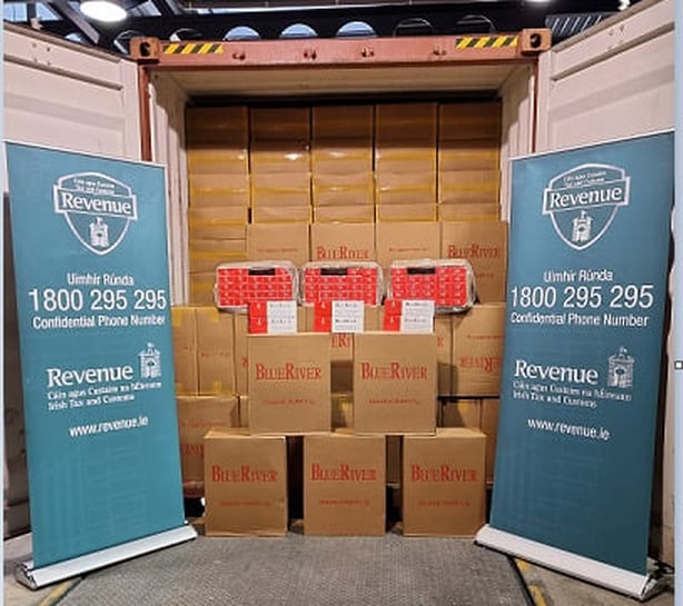 The illegal cigarettes, branded 'Blue River' were discovered when officers searched a container from Vietnam that had arrived into Ireland on a vessel from Rotterdam.