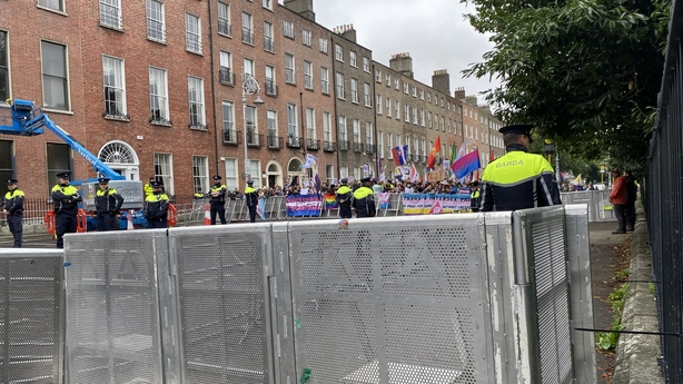 A counter-demonstration, organised by the Trans Right Alliance, marched from Kildare Street to Merrion Square where garda barriers kept the two sides about 50m apart.