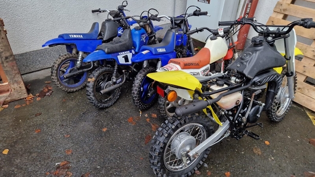 The scramblers, quad bikes and motorbike did not have tax or insurance, and were seized along with €500 worth of crack cocaine, drugs paraphernalia and an imitation firearm.
