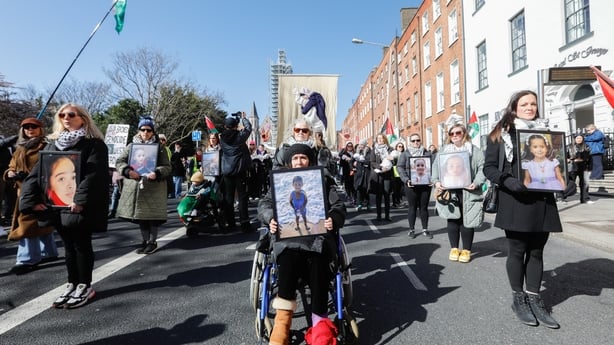 The demonstrators are marching from the Garden of Remembrance in Parnell Square to the Department of Foreign Affairs on St Stephen's Green, where a rally is being held.