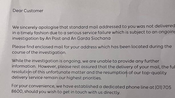Some customers had around eight weeks' worth of mail delivered today along with a letter containing an apology from An Post.