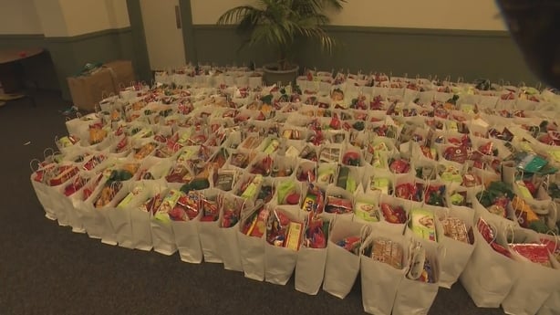 Cars, vans and mini buses have been pulling up to the RDS with volunteers from a number of organisations including Alone, St Vincent de Paul, Simon, Age Action, Dublin City and a number of other groups collecting meals and feature gift bags to be delivered.