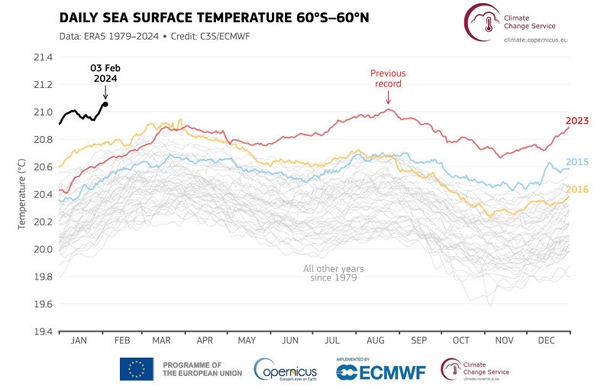 According to the European Copernicus Climate Change Services, Over the month of January, average surface air temperatures worldwide were 13.14C, which was 0.12C higher than the temperature of the previous warmest January, which was in 2020.