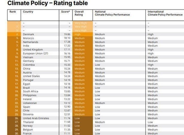 The ranking was produced by Germanwatch, an environmental organisation that, for two decades, has monitored and ranked various countries' efforts to reduce greenhouse gas emissions and achieve the goal established in the 2015 Paris Climate Agreement.