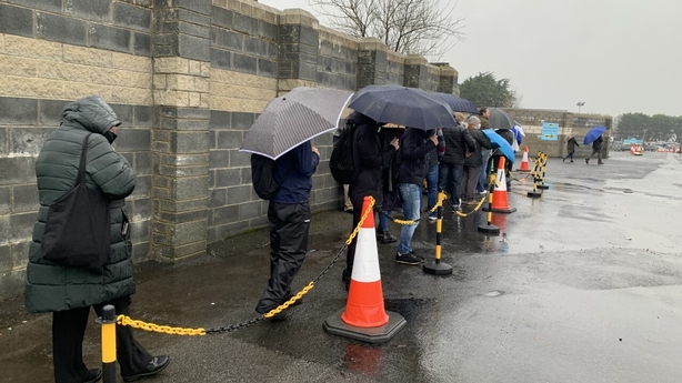 The vaccination centre opened just after 8.30am this morning as hundreds of people queued around the block along Old Station Road, Eglinton Street and onto Anglesea Street throughout the day.