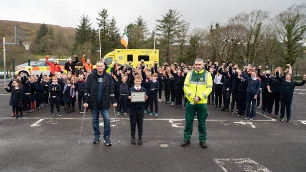 Owen Cunningham was presented with a Certificate of Recognition by the National Ambulance Service at his school in Kilcar this morning.