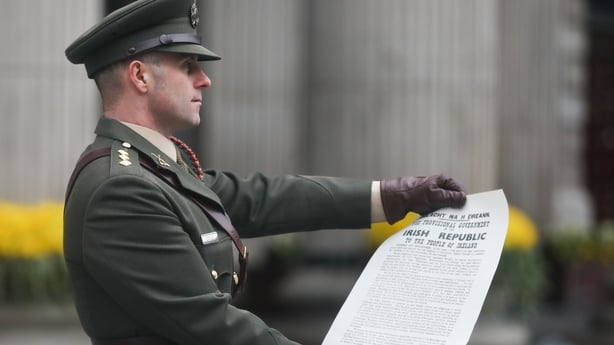 Captain Austin Doyle reads the proclamation outside the GPO as part of the 107th commemoration of the Easter 1916 Rising.