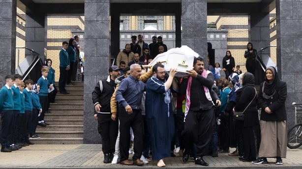 The hearse carrying Dlava left Clonskeagh Mosque by garda escort this afternoon. Her classmates formed a guard of honour as her coffin was carried out.