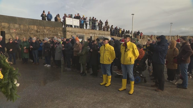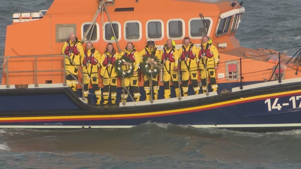 The lifeboat crews were joined by colleagues from the Irish Coast Guard who formed a guard of honour as wreaths were brought out of the lighthouse.