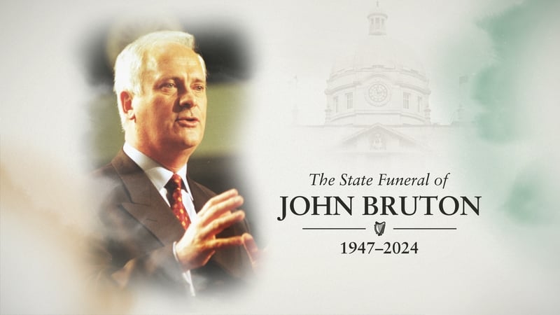 The State funeral of former taoiseach John Bruton is taking place this morning at Saints Peter and Paul's Church in Dunboyne, Co Meath.