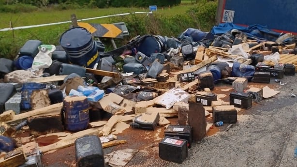 A major clean-up operation is under way in Co Louth following a spillage of hazardous waste from an overturned lorry.