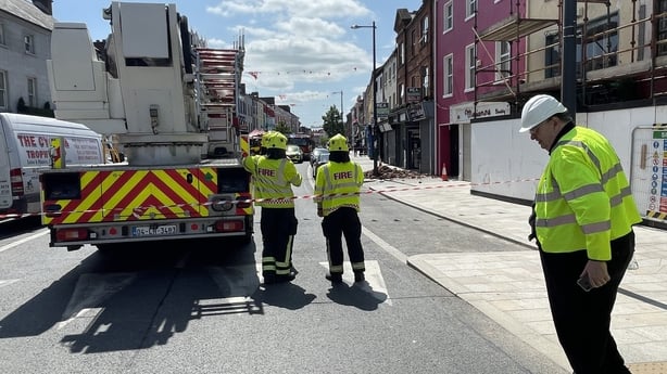 Emergency services are at the scene of a partial wall collapse in the centre of Dundalk, Co Louth.