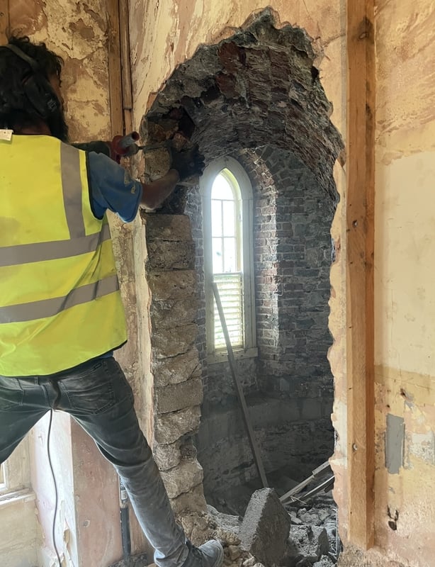 Contractors from the National Gates and Joinery Company, who are involved in the restoration work at Johnstown, broke through a section of wall at the weekend and then found the hidden room.