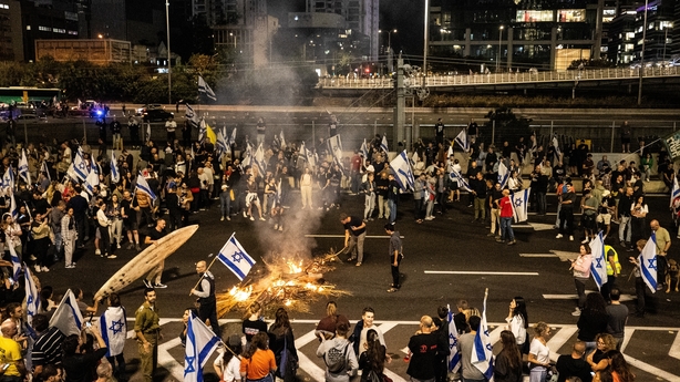 After Mr Gallant was fired, protesters in Israel blocked highways and lit bonfires on roads, police said.