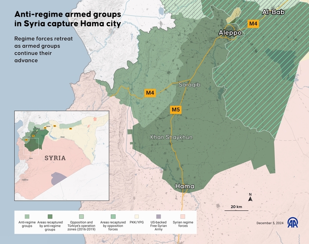 The main insurgent commander Abu Mohammed al-Golani declared full rebel control over Hama on Thursday and issued a video statement warning against any involvement by another Iran-aligned force - Iraq's Hashd al-Shaabi paramilitary coalition.