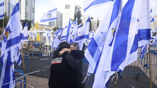 In Tel Aviv, people gathered, some weeping, at what has come to be known as Hostages Square outside Israel's defence headquarters.