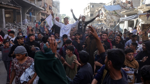 In northern Gaza yesterday, Palestinians gathered for the biggest anti-Hamas rally since the start of the war, chanting "Hamas out" and "Hamas terrorists".