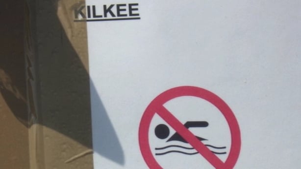 Signs were posted yesterday warning swimmers that bathing is prohibited because of the "risk of increased bacterial levels due to a pump malfunction in the wastewater pump station".