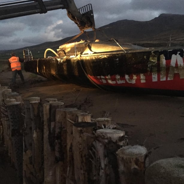 Members of the Dingle coast guard assisted in removing the vessel from the beach to a secure location.
