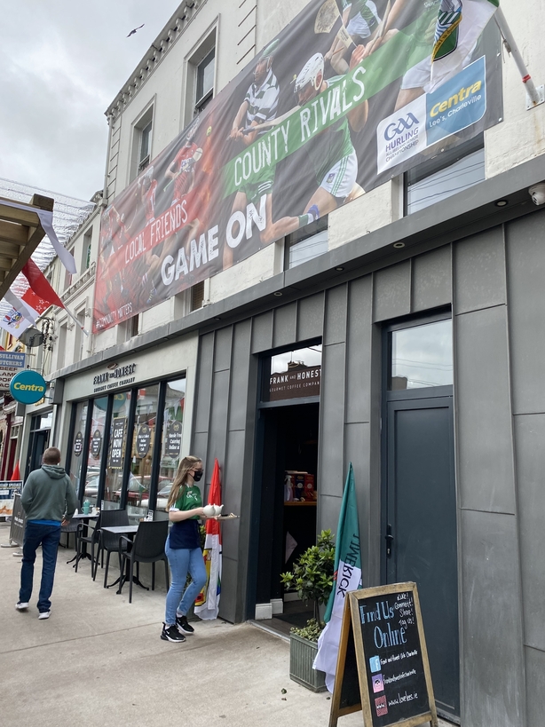 A sign on the town's Centra supermarket declares: "Local friends, County rivals".
