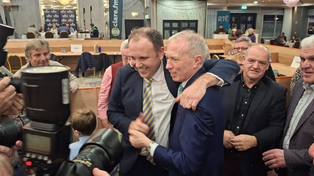 Fianna Fáil's so-called 'Comeback Kid' Timmy Dooley, from Mountshannon and Tulla, was the first elected in count 13, winning back the seat he lost in 2020 on a total of 13,566 votes.