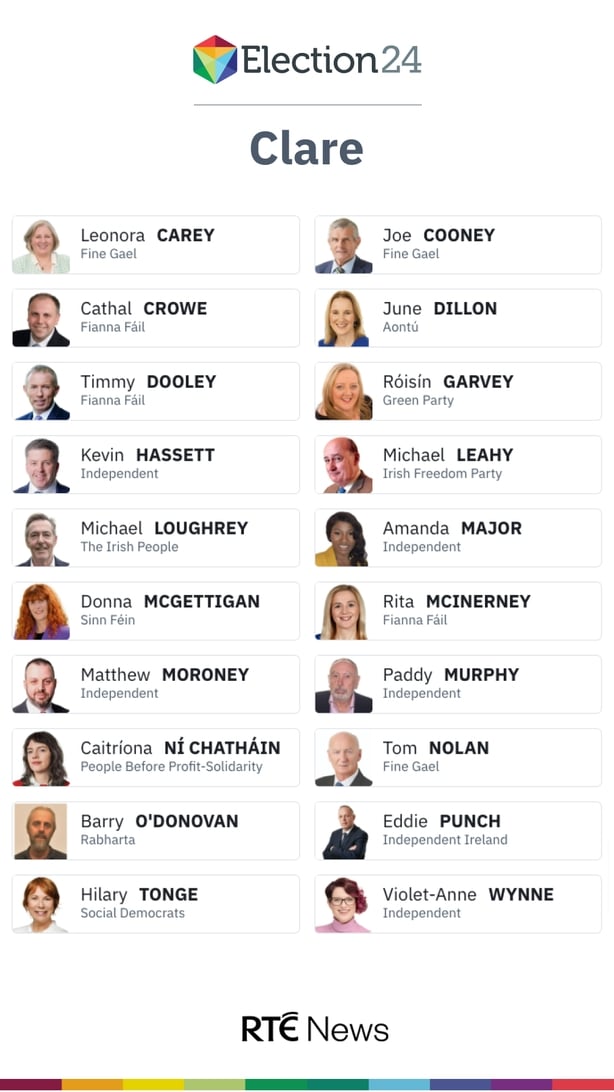 Voters in the constituency of Clare have elected four TDs in the General Election 2024, among them two first-time Dáil deputies.