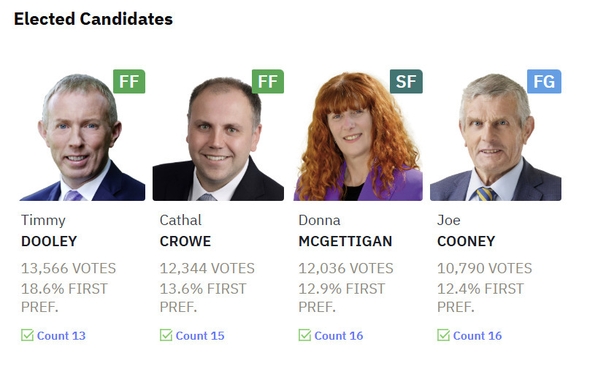 The final lineup of TDs includes two Fianna Fáil, one Sinn Féin and one Fine Gael - in what will be seen as a successful election for both Fianna Fáil and Sinn Féin while questions will linger about the Fine Gael candidate strategy.