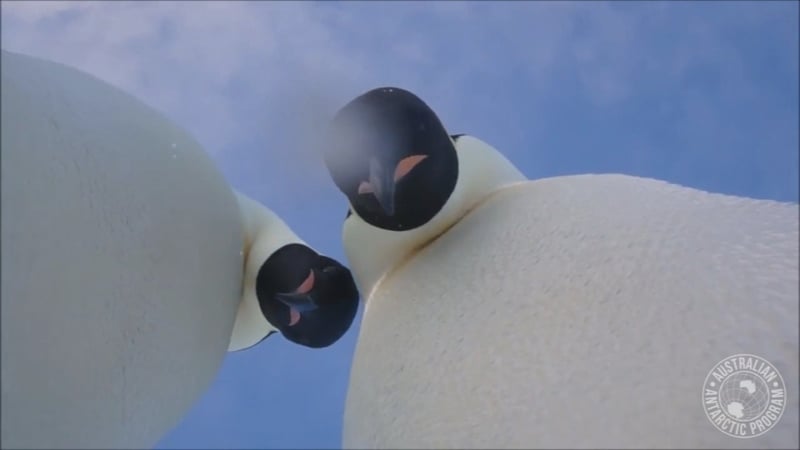 Eddie Gault left the camera on ice when visiting the rookery, and it didn't take long for the naturally curious penguins to inspect the equipment.