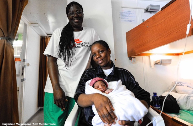 The child is the 36th baby to be born on board one of the ships that patrol the Mediterranean rescuing migrants attempting to reach Europe in search of a better life.