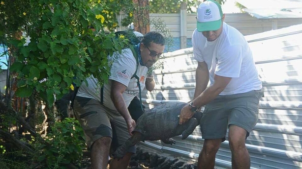 The team moved the tortoise in a boat to the Giant tortoise Breeding Center on Santa Cruz Island where it will stay in a specially implemented pen for their stay.