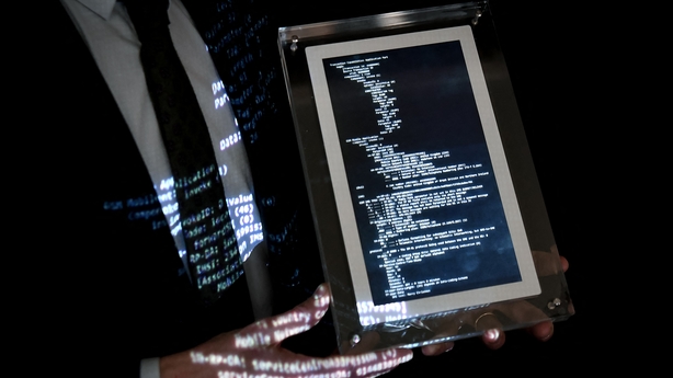 The selling of intangible goods is not legal in France and so the auction house has packaged the text message in a digital frame, displaying the code and communication protocol, Mr Aguttes said.