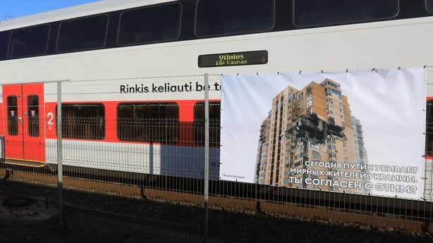 An exhibition of shocking images from the war in Ukraine has opened at a train station in Lithuania with the aim of giving Russian transit travellers a true picture of the conflict.