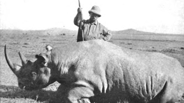 They looked at images of rhinos shot dead by hunters, including one showing former US President Theodore Roosevelt, taken in 1911, standing over a black rhino he had just killed.