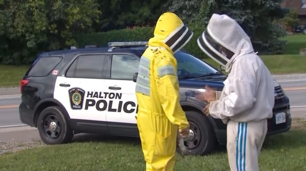 Police in Burlington, Ontario, had to set up an unusual rescue operation for five million bees that escaped after their bee hives fell off a truck.