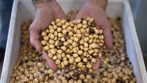 Mr Castagna pours bag after bag of hazelnuts into a machine which roasts them before they are ground up and mixed with cocoa.