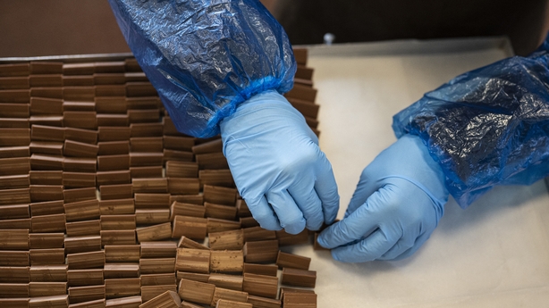 The chocolate mixture then passes through a machine which slices it and pours it directly onto a conveyer belt without using moulds.