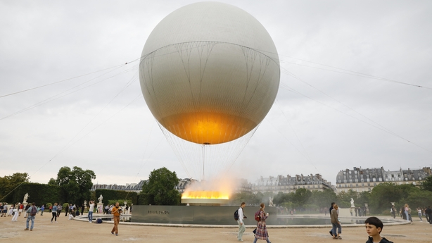 The cauldron flies into the Parisian sky at sunset each day under a 30-metre balloon in the Jardin des Tuilleries park.