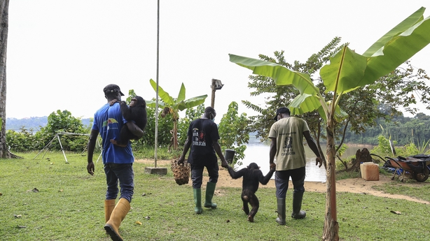 The charity helps the orphans become re-accustomed to surviving in semi-wild conditions, but on islands away from their only predator - the humans with whom they share 98% of their DNA and a good degree of behaviour.