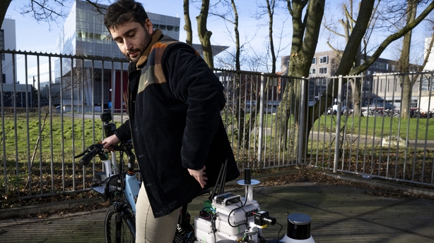 His blue electric bike, kitted out with an array of laser sensors and scanners, speeds off among thousands of students pedalling home through the campus of the Delft University of Technology.