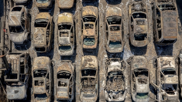 Trucks hauled away burned-out cars, many of which are toxic messes. The work is far from done: hulls of incinerated cars line roadsides and fill driveways, and many drains appeared unprotected.