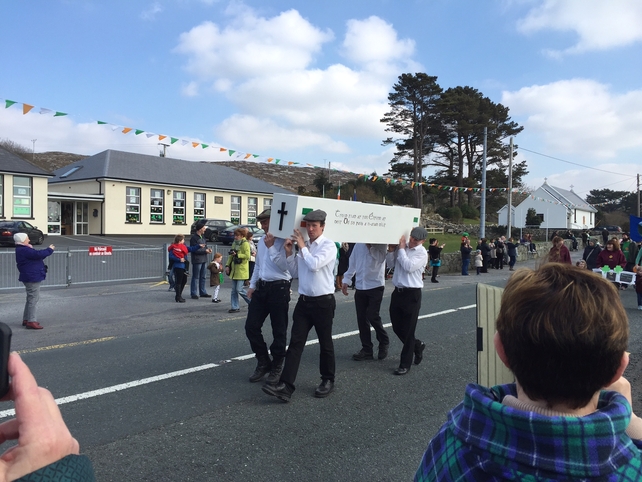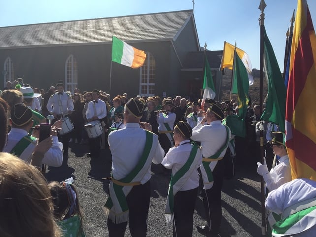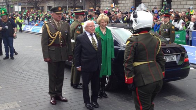 D'fhreastal an tUachtarán Michael D Higgins agus a bhean chéile Sabina ar an bparáid i mBaile Átha Cliath inniu. Bhí siad ag faire ar an bparáid taobh amuigh de Ard-Oifig an Phoist ar Shráid Uí Chonaill.
