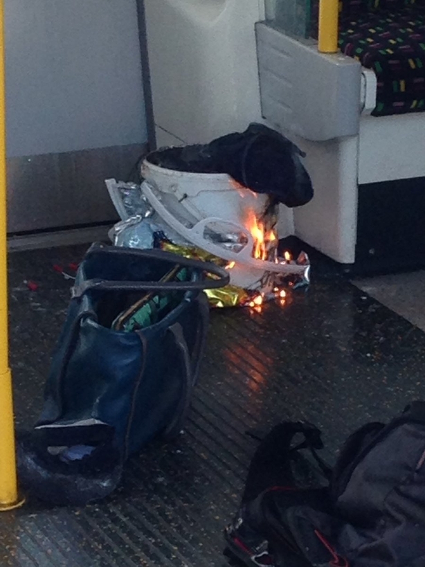 Dúirt Mark Rowley, Leas-Choimisinéir na bPóilíní gur sheol an pléascadh meall tine suas caráiste traenach ar an District Line in iardheisceart na cathrach fad agus a bhí an traen ag seasamh ag Stáisiún Parsons Green.