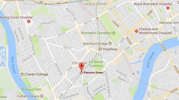 Deir na póilíní gur cuireadh ar an eolas iad faoin bpléasc i Stáisiún Parsons Green, ar a mbíonn an District Line ag 8.20 ar maidin agus go raibh na seirbhísí éigeandála ar an láthair go pras.