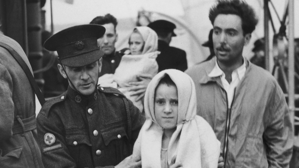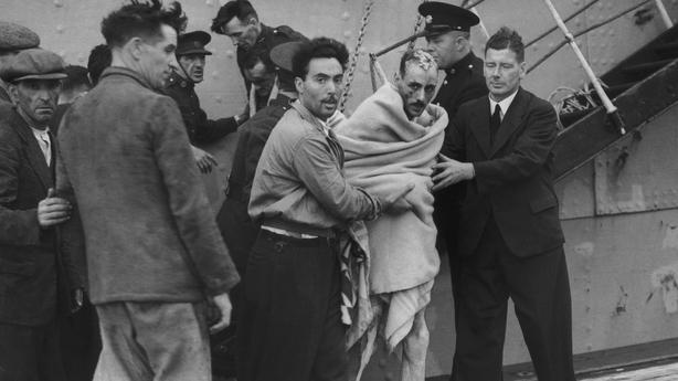 Íospartaigh a tugadh slán ón Athenia a báthadh i bhfarraigí shuaite Rocal ag teacht i dtír i nGaillimh