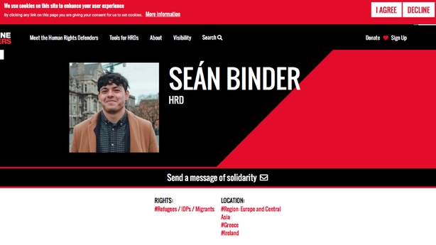 Bhí Seán Binder, a rugadh sa Ghearmáin ach a tógadh i gCorca Dhuibhne, ag obair go deonach le heagraíocht a chabhraíonn le teifigh ar Oileán Lesvos nuair a gabhadh é féin agus beirt chomhleacaí eile i mí Lúnasa 2018.