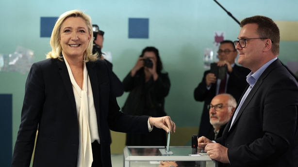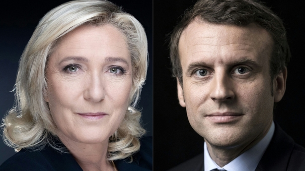Le Pen (ar chlé) ag géilleadh. Macron ag rá go mbeidh na 5 bliana seo romhainn 'difriúil'.