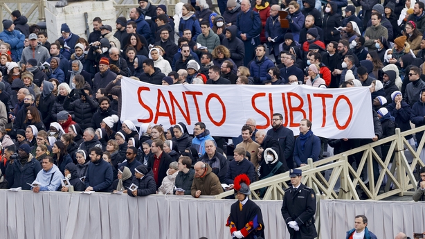 Bhí na mílte duine a tháinig as gach cearn den domhan i láthair ag Aifreann Éagnairce an Phápa Beinidict - Joseph Ratzinger, mar a baisteadh é - i gCearnóg Pheadair ar maidin.