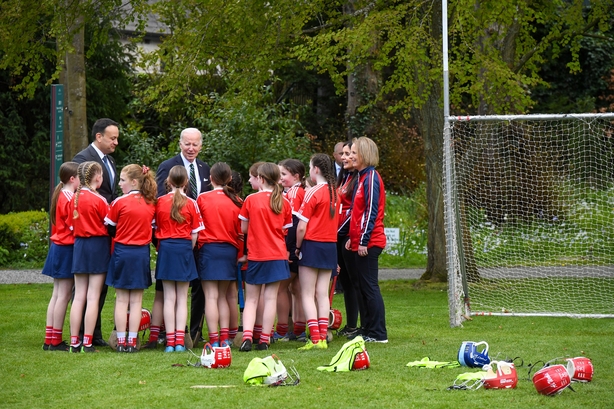 Bhí cruinniú ag Joe Biden leis an Taoiseach Leo Varadkar i dTeach Bhán na Feirme – an t-arás fáiltithe Stáit i bPáirc an Fhionnuisce.